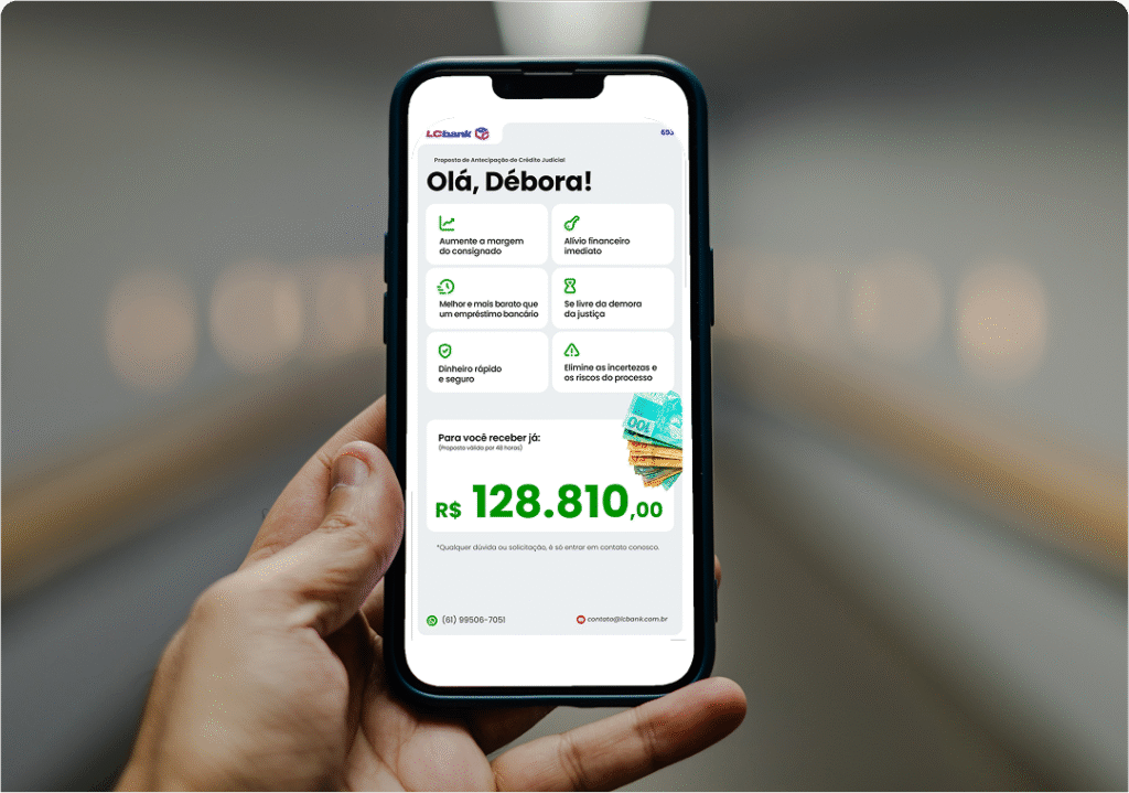 Aceite a proposta e receba em até 24h! O LCbank tem o pagamento mais rápido do mercado.
